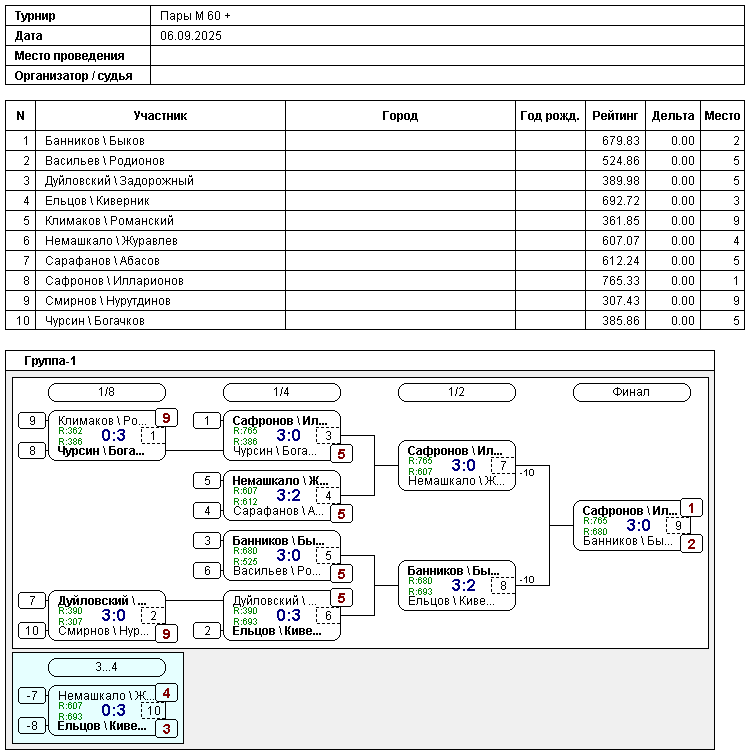 Результаты пары М 60 +
